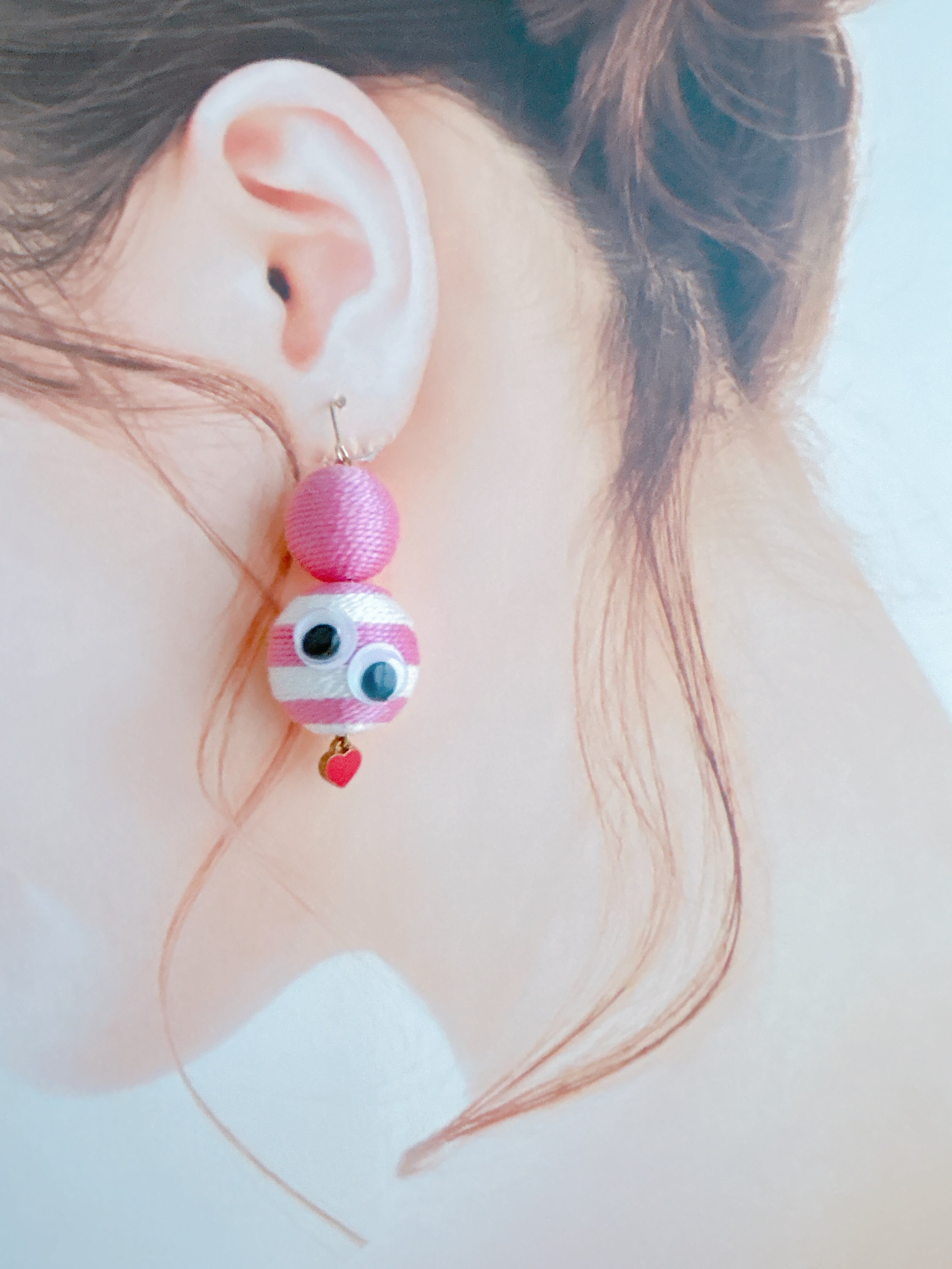 可愛いピンクのボーダーにクルクル動くお目目を付けてみました!先端に小さなハート付き